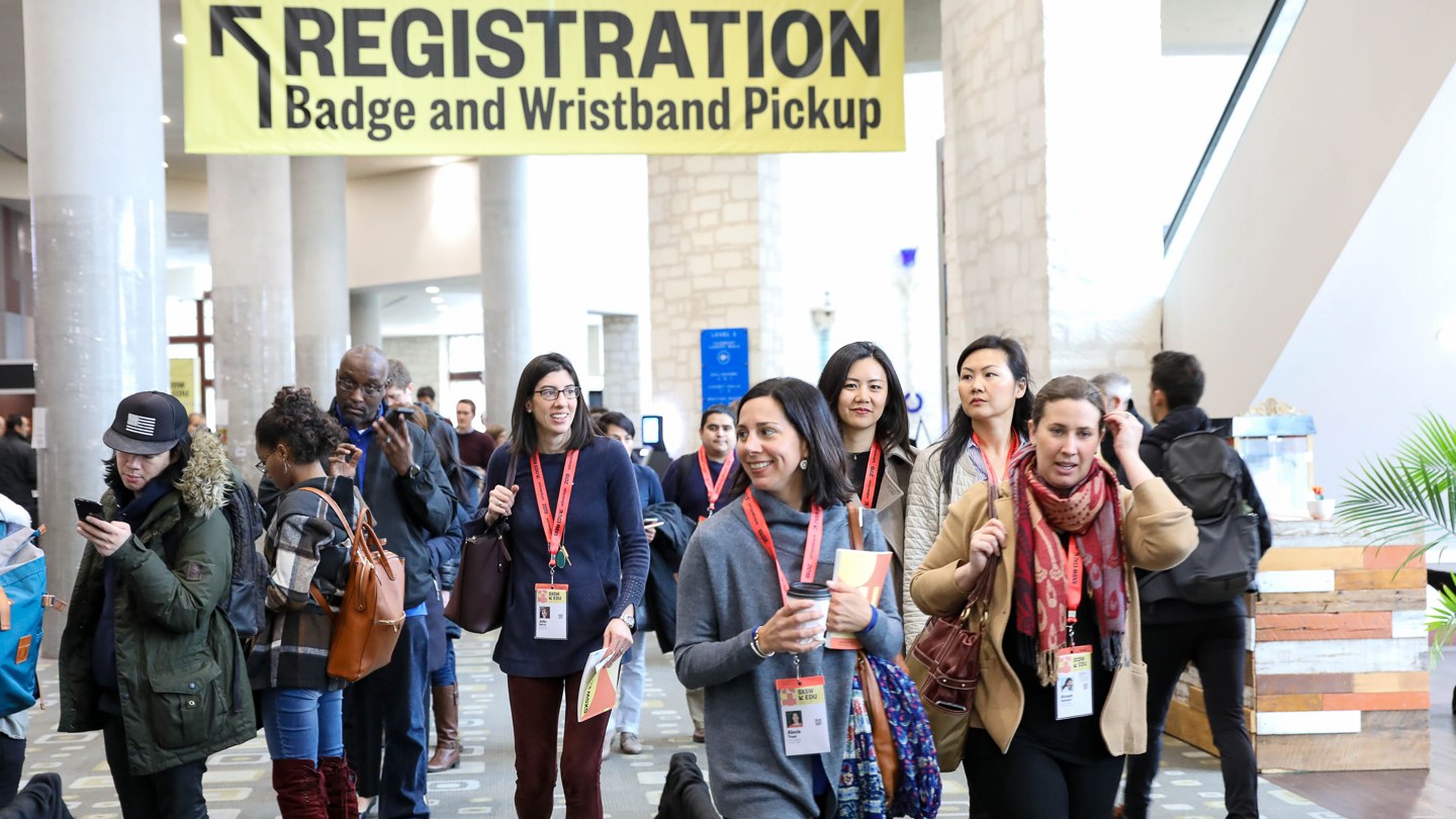 SXSW EDU 2019 Attendees picking up registration badge. Photo by Randy & Jackie Smith.